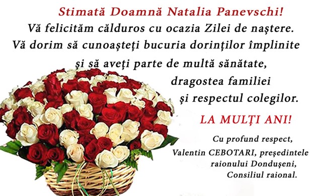 Mesaj de felicitare cu ocazia Zilei de naștere, pentru Doamna Natalia Panevschi, Consilier raional,