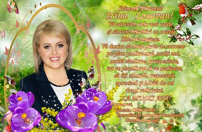 Mesaj de felicitare, cu prilejul zilei de naștere, pentru Doamna Irina Lozovan, Deputat în Parlamentul Republicii Moldova