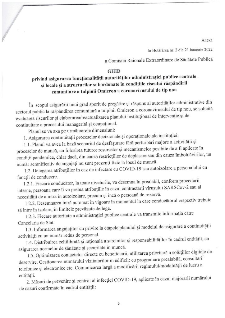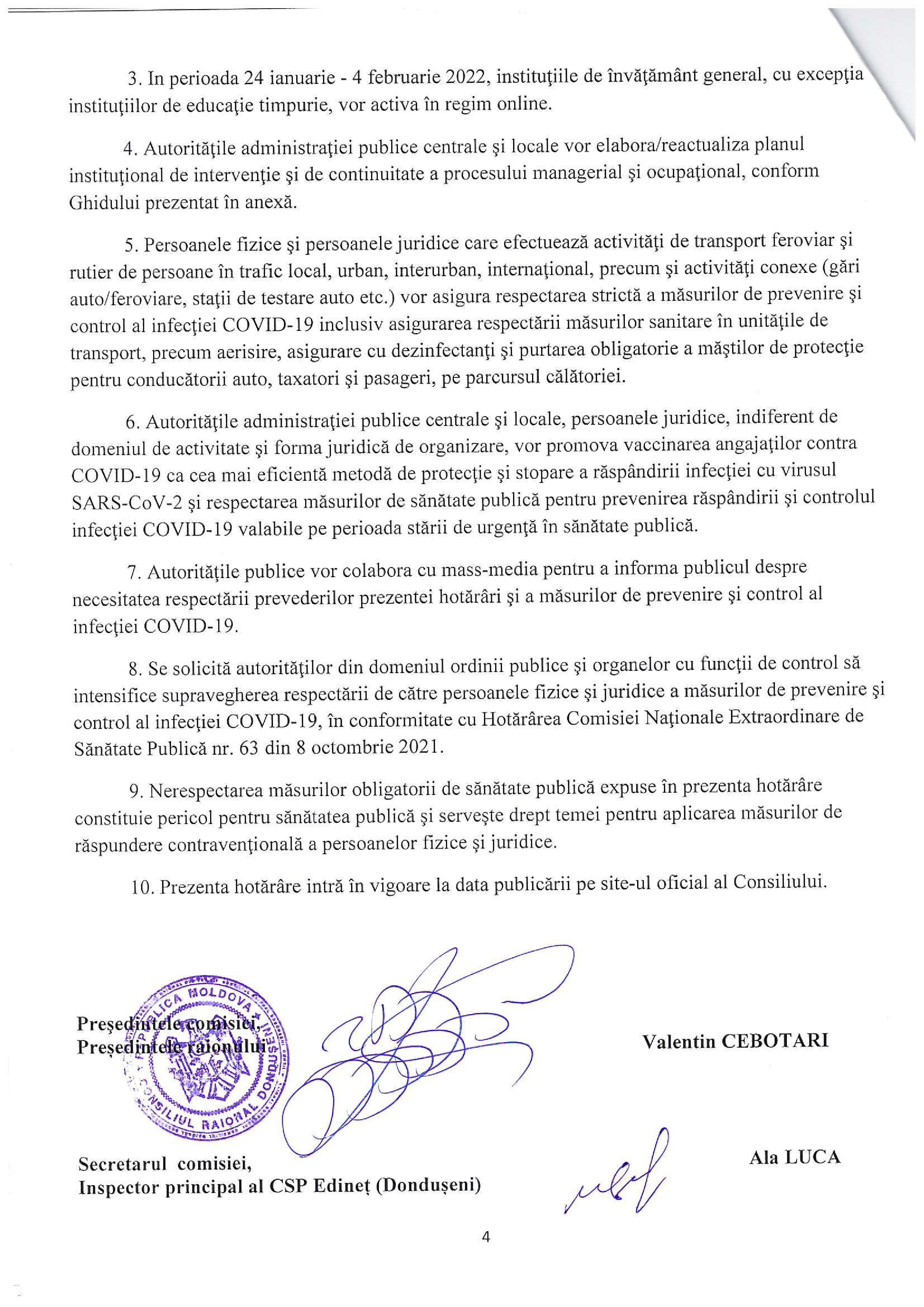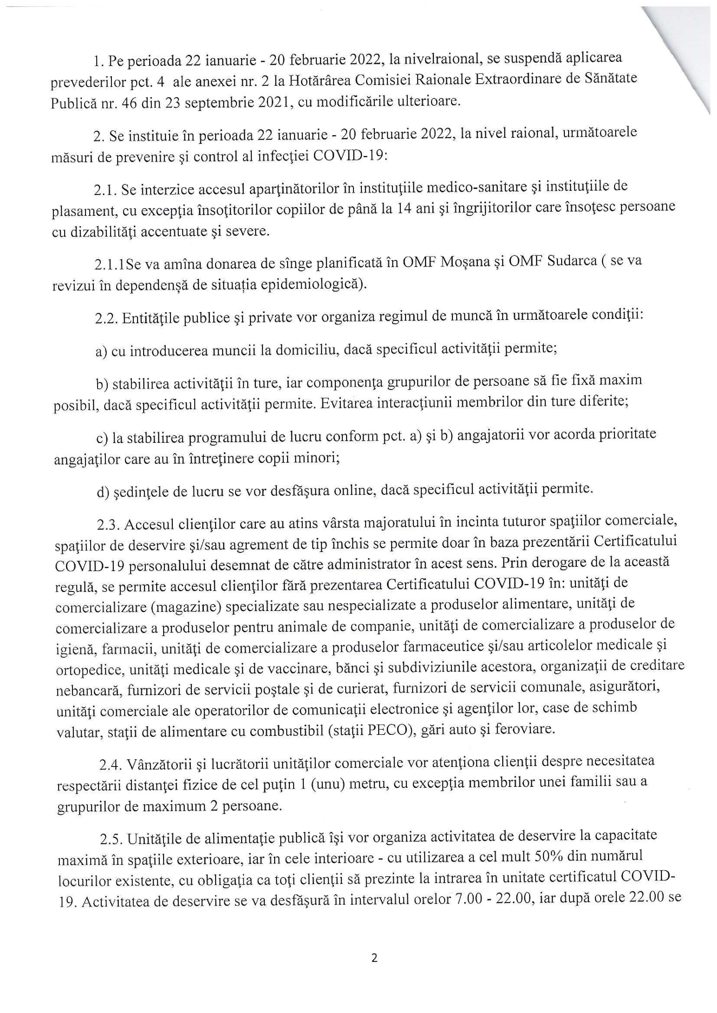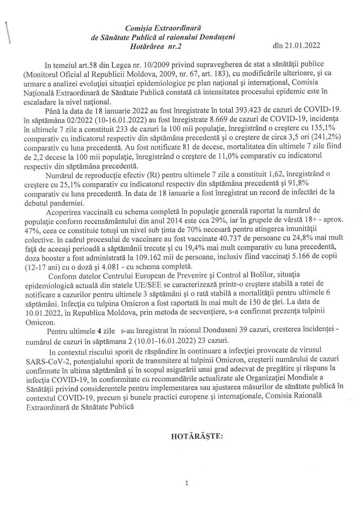 Hotărârea nr. 2 a Comisiei Extraordinare de Sănătate Publică al raionului Dondușeni din 21.01.2022