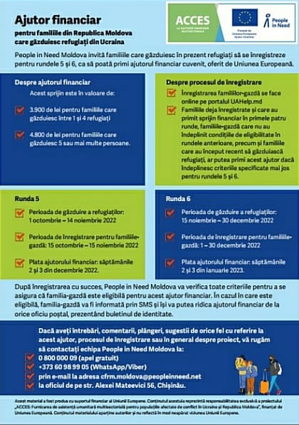 Ajutor financiar pentru familiile din R. Moldova care găzduiesc refugiați din Ucraina