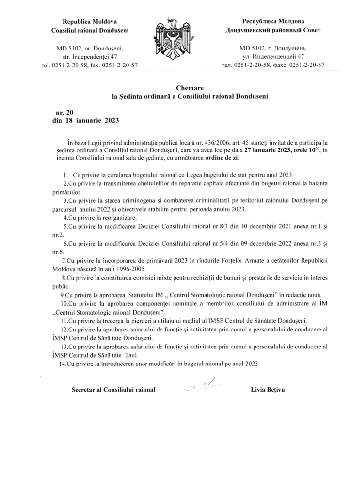 Chemare la ședința ordinară a Consiliului Raional Dondușeni