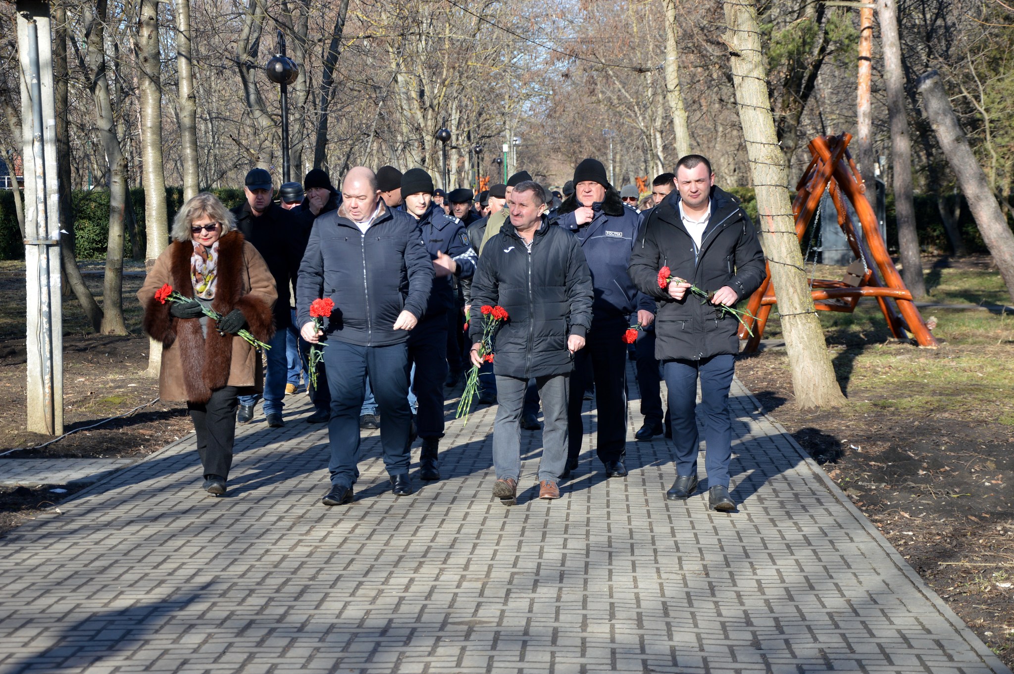 După un minut de reculegere în memoria celor care nu s-au întors de pe câmpul de luptă, participanții la miting au depus flori la monumentul eroilor căzuți în războiul din Afganistan.