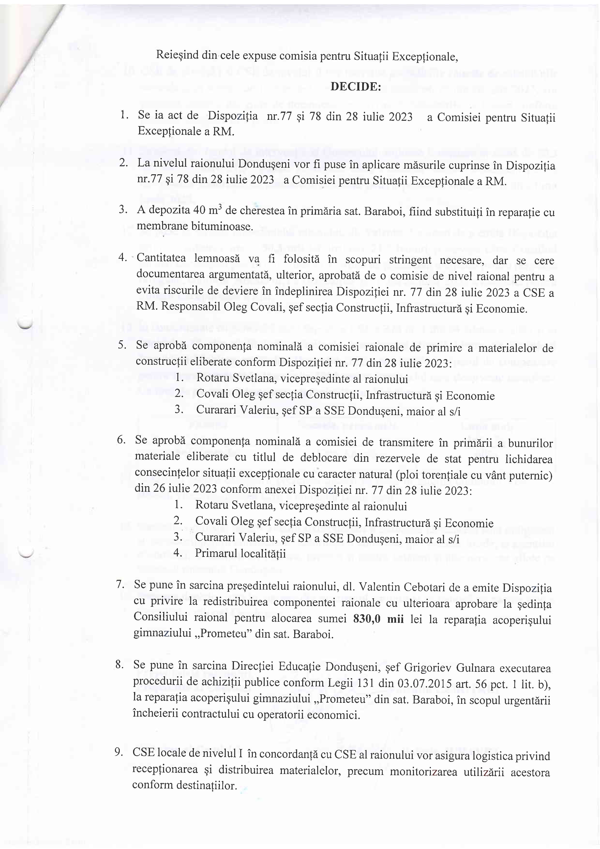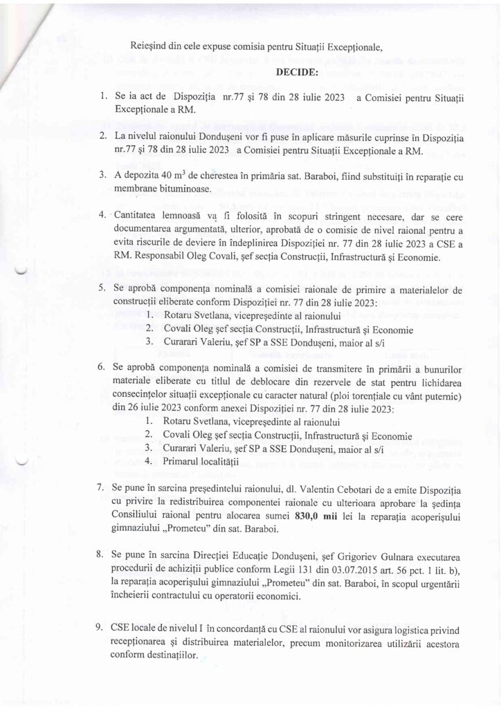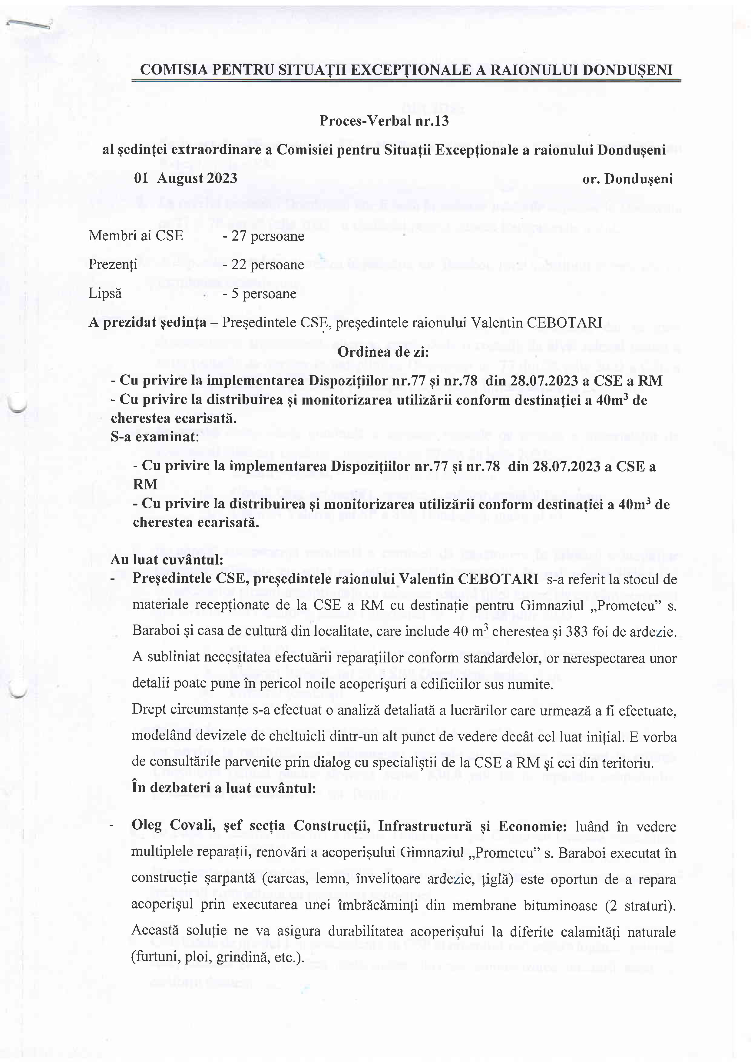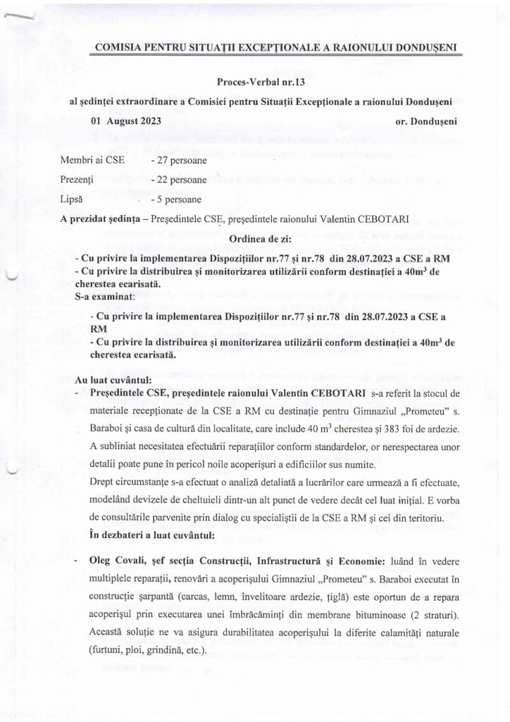 Proces-Verbal nr.13 al ședinței extraordinare a Comisiei pentru Situații Excepționale a raionului Dondușeni